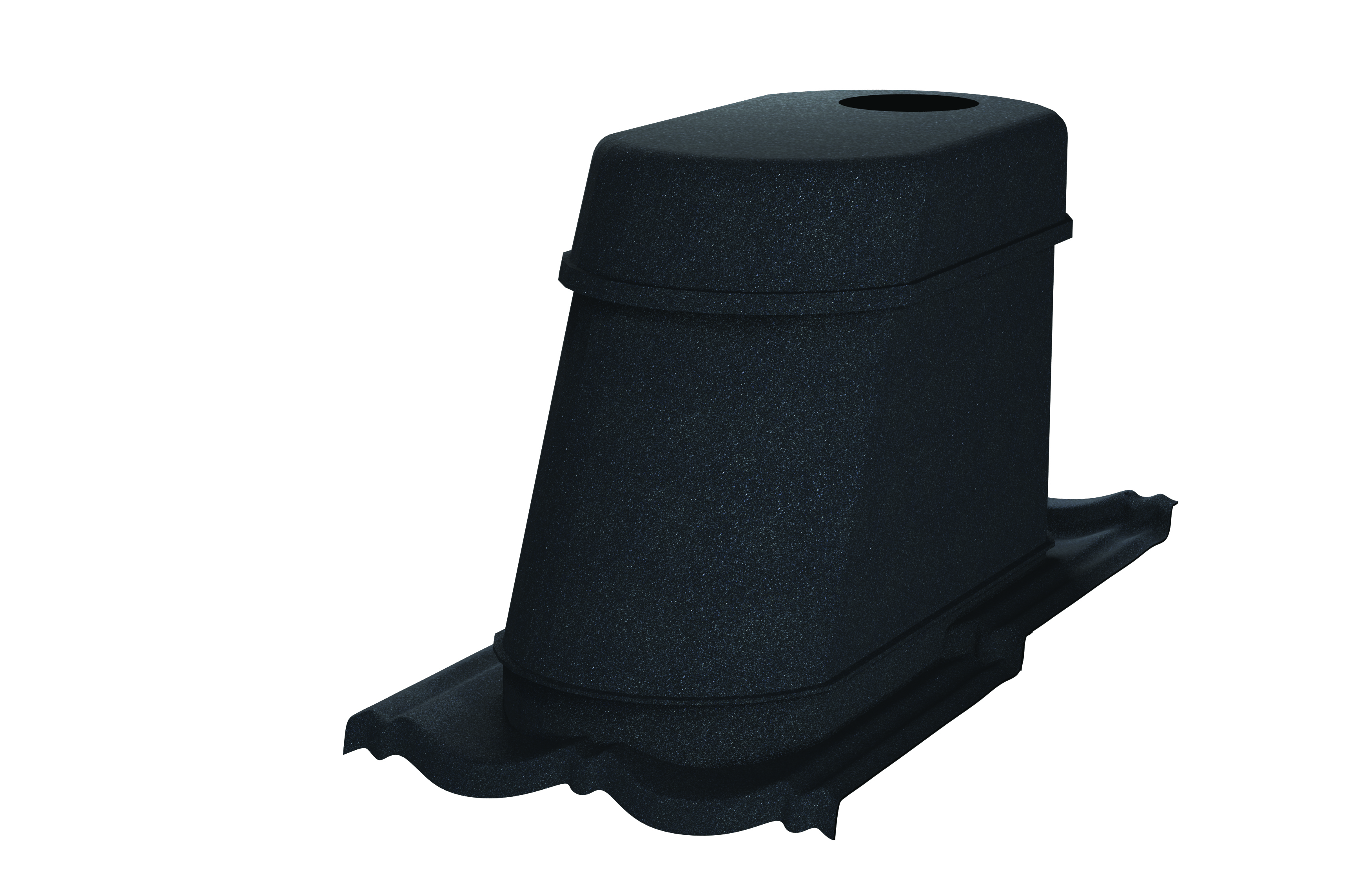 Utlufting i underste del Ø110 mm rør med overgang til 100, 70 og 50 mm. Sanitær utlufting i øverste del 15 x 15 cm isolert rør med multiovergang klikksystem til 100, 110, 125, 130 og 150 mm.