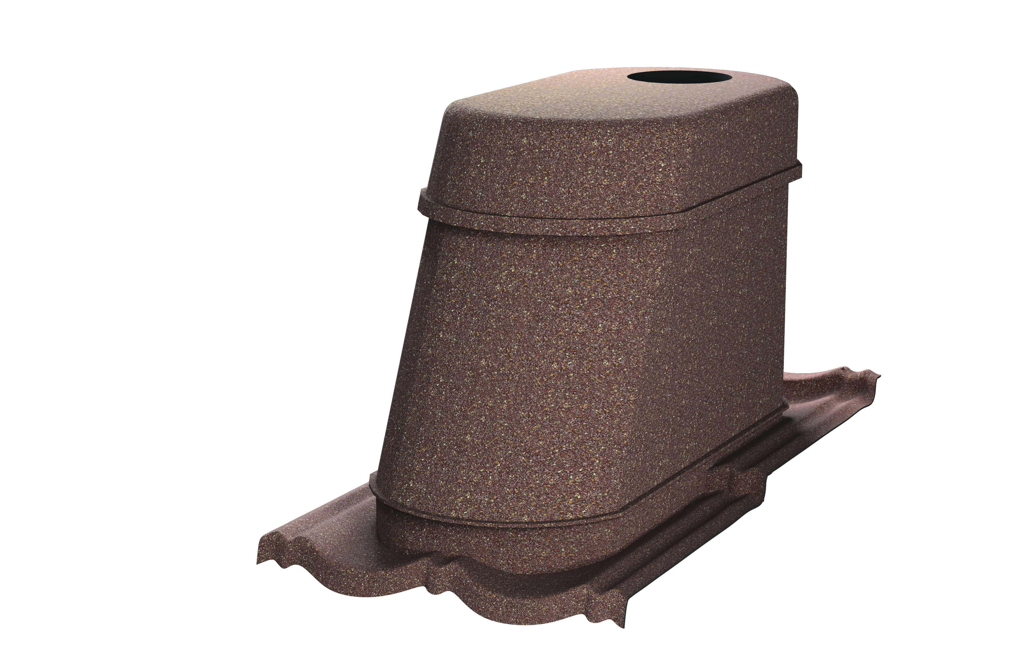 Utlufting i underste del Ø110 mm rør med overgang til 100, 70 og 50 mm. Sanitær utlufting i øverste del 15 x 15 cm isolert rør med multiovergang klikksystem til 100, 110, 125, 130 og 150 mm.