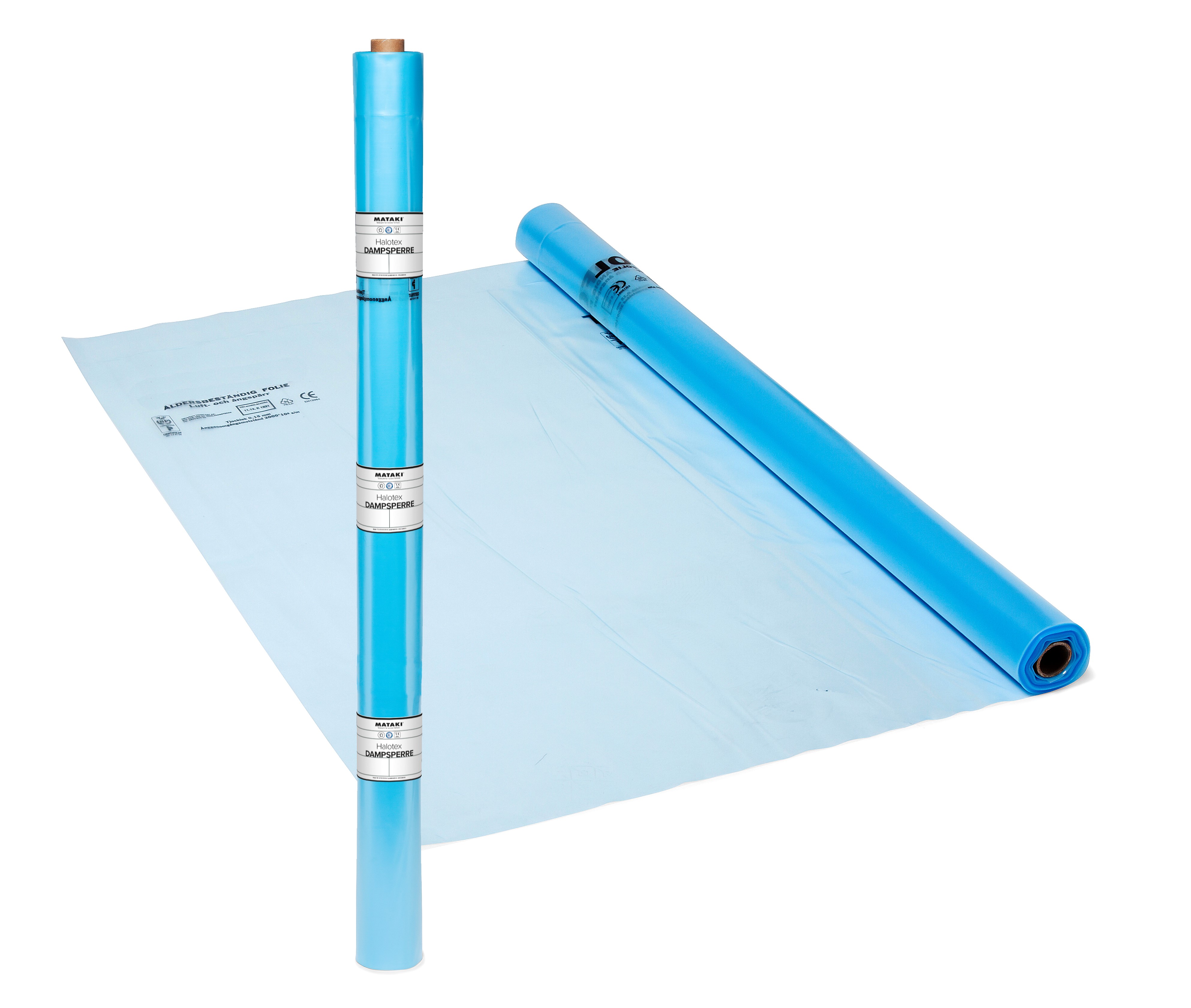 Mataki leverer mange typer dampsperre med hovedvekt på aldrings- og UV bestandig normgodkjent folie (blåfolie). Til vegg brukes dampsperre i tykkelse 0,15 og 0,20 mm med bredde 2,60 m. Til gulv og dekker, velg dampsperre 0,20 mm i bredde 4 m.