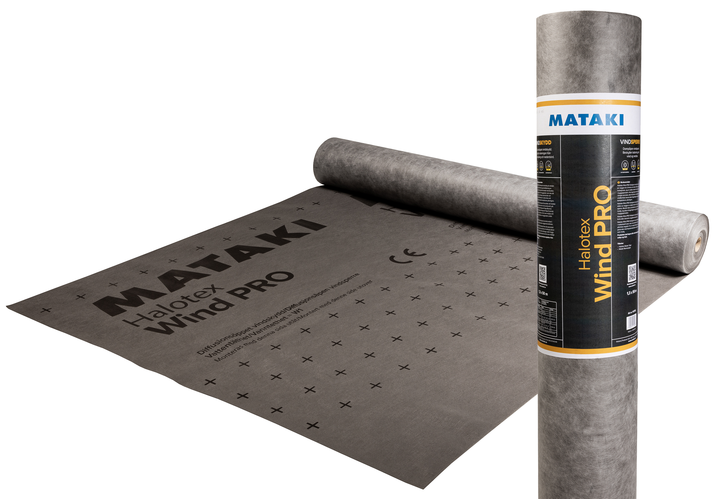 Halotex Wind Pro er en 120 g/m² UV-stabilisert duk med vannavstøtende og dampåpen overflate. Dette er den midterste allround kvaliteten i Matakis vindsperresortiment. Duken er bygget opp av 3 sjikt med en av markedets mest dampåpne film i midten, og polypropylenfiberduk på over- og underside. Den grå siden skal vende ut, og den hvite siden inn.